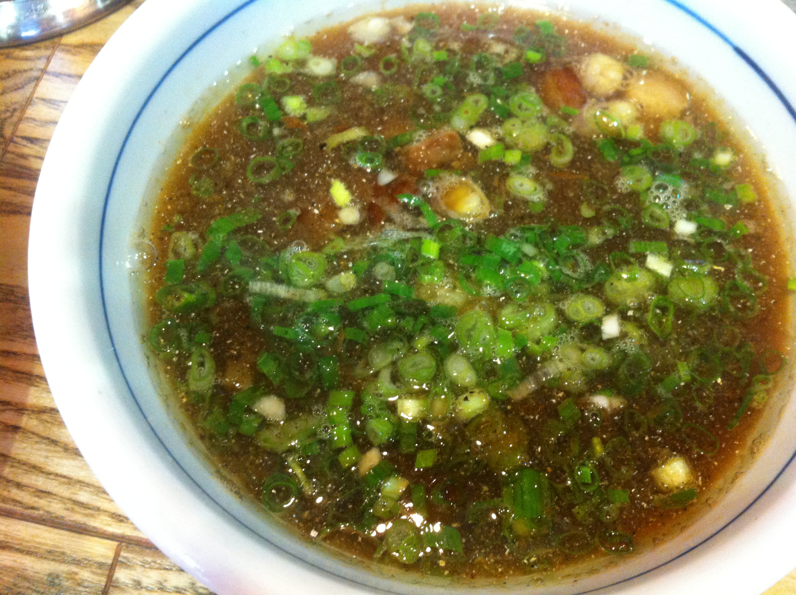 Лапшу готовят при вас и подают в большой тарелке. Бульон (вы же помните, что китайская еда крайне непривычна и отпугивает ароматом на улице, атмосферой внутри и ароматом внутри самого заведения, а потом и внутренними деталями) пах… короче, лучше не нюхать. Зато когда ты вертишь на палочках длинную лапшу, окунаешь ее в этот бульон — вкусно. Подозреваю, что по-хорошему, надо перепробовать было все сеты:)) Но на острое я не рискую в Китае.