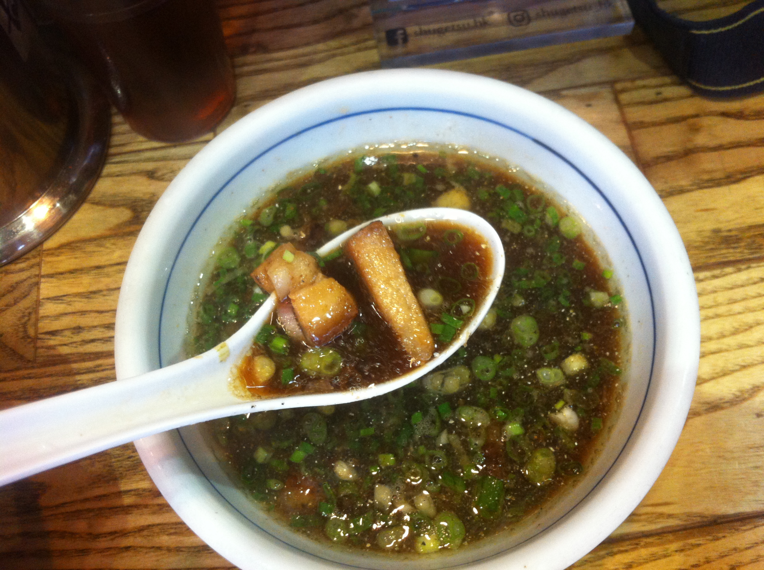 Посоветовали сходить в Shugetsu. Это — местная лапшичная, которая имеет звезду Мишлен. Сказано — сделано. Во-первых, если не иметь точных координат и не искать ее целенаправленно, вряд ли найдешь. Мы прошли весь этот переулок с забегаловками еды и скорее бы засели в чем-то приличном…